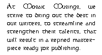 If you have any suggestions or comments, please direct them to lkanter@mosaicmusings.net